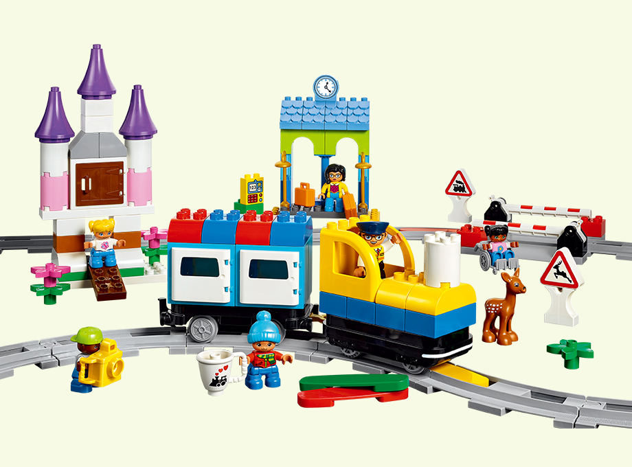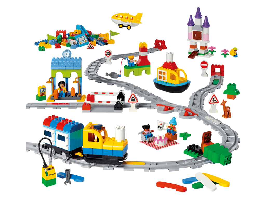 センサー搭載のトレインに、方向や停止の指示をしながらプログラミング的思考を育むセットです。