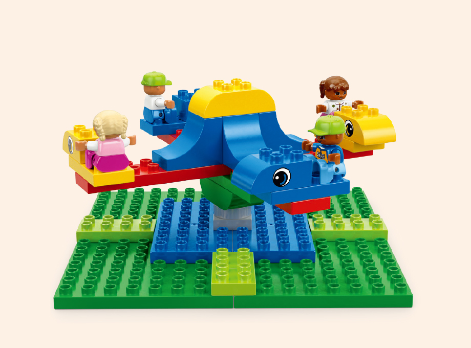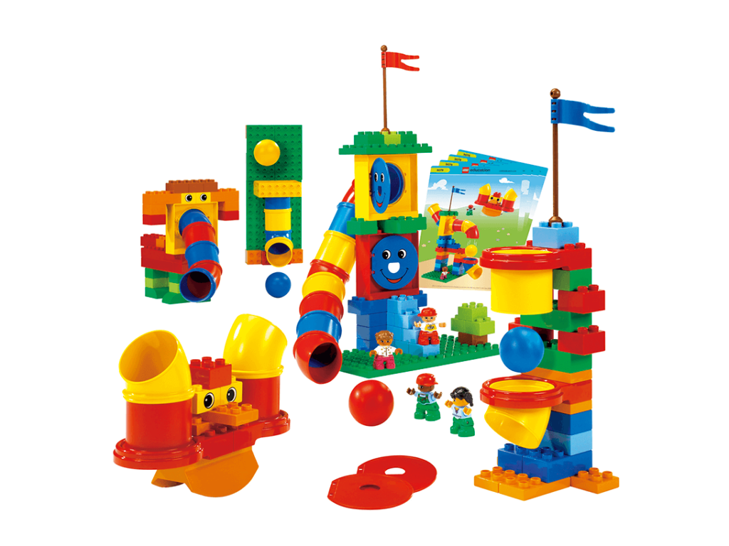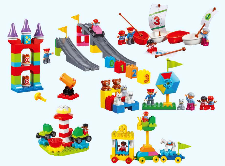 歯車や滑車、スロープなどを使って、楽しい動きのある遊園地を組み立てられるセットです。
