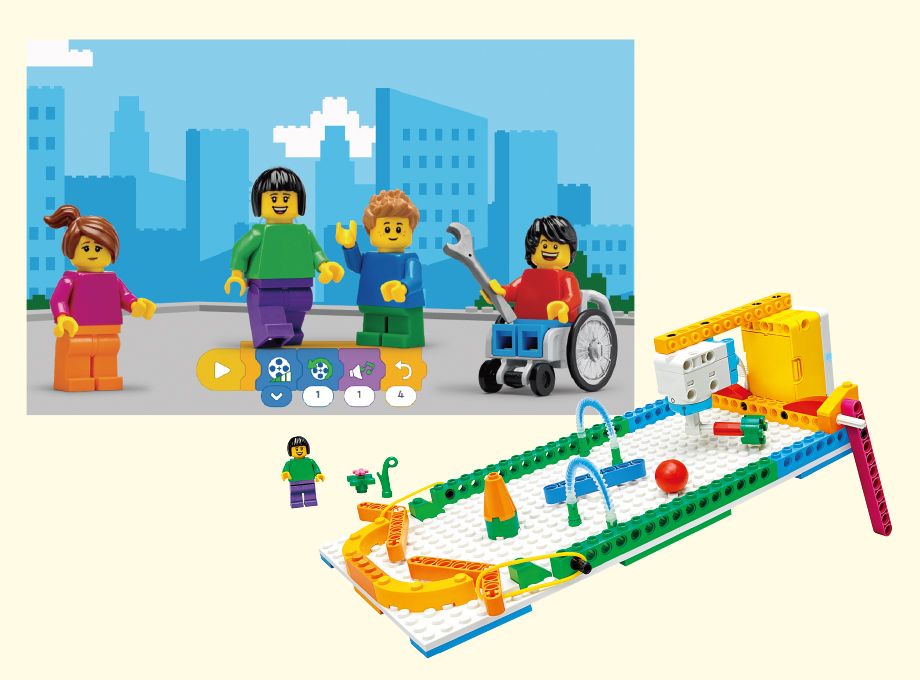ハブやモーター、センサーとレゴ®ブロックを組み合わせて作ったモデルに、アイコンベースのプログラムで命を吹き込みます。