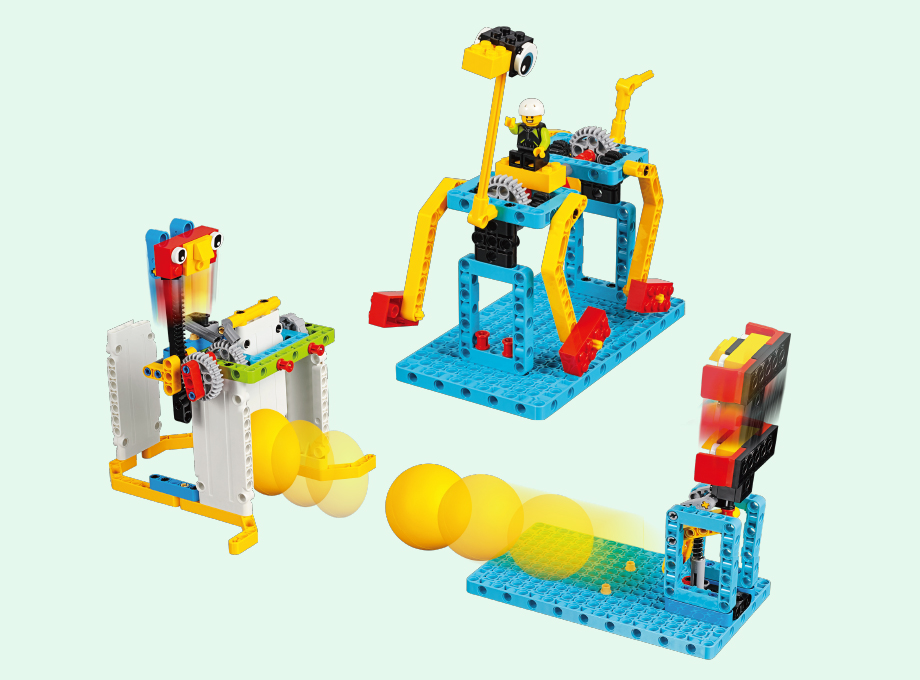 このカリキュラムではニュートンの運動法則に触れながら運動エネルギーの理解を深めるとともに、クランク、シャフト、ベベルギア、ユニバーサル・ジョイント、ウォームギア、ラチェット構造などの機械工学の概念について学びます。予測を立て設計を分析し、結論を引き出すエンジニアリングのプロセスを導入します。また、パートナーと協力してゲームのルール、競技場、設備を作成する中で、意見や感想を交換し、互いの視点の理解や対立した時の対処や表現方法についても学びます。