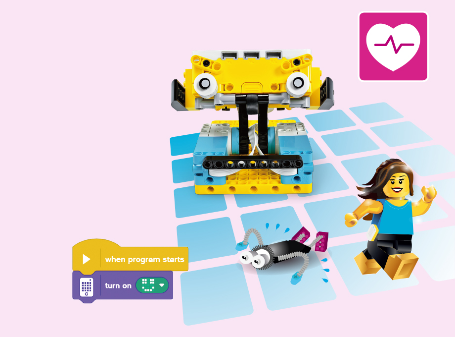 プログラムを動かす心臓部のハブと、モーター、カラーセンサー、ライトマトリックスなどのパーツとレゴ®ブロックを組み合わせて組み立てたモデルに、アイコンベースの直感的なプログラミング言語を使って、命を吹き込みます。